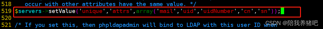 - 519行,启用,设置用户属性的唯一性,这里将cn,sn加上了,以确保用户名的唯一性