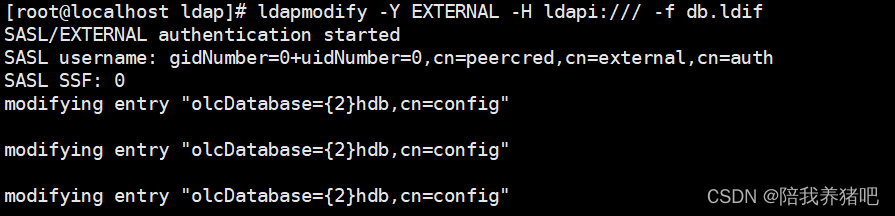 ldapmodify -Y EXTERNAL -H ldapi:/// -f db.ldif