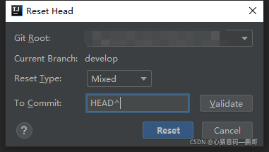 在To Commit中的HEAD后面加上^,点击Reset即可撤回最近一次的尚未push的commit
