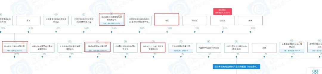 根据企查查显示,联想控股、蓝色光标(上海)投资管理有限公司各持有考拉鲲鹏4.9505%和4.4554%的股份,雷军和蓝色光标则通过拉卡拉支付股份有限公司分别持有该公司约0.1515%和0.1634%的股份;