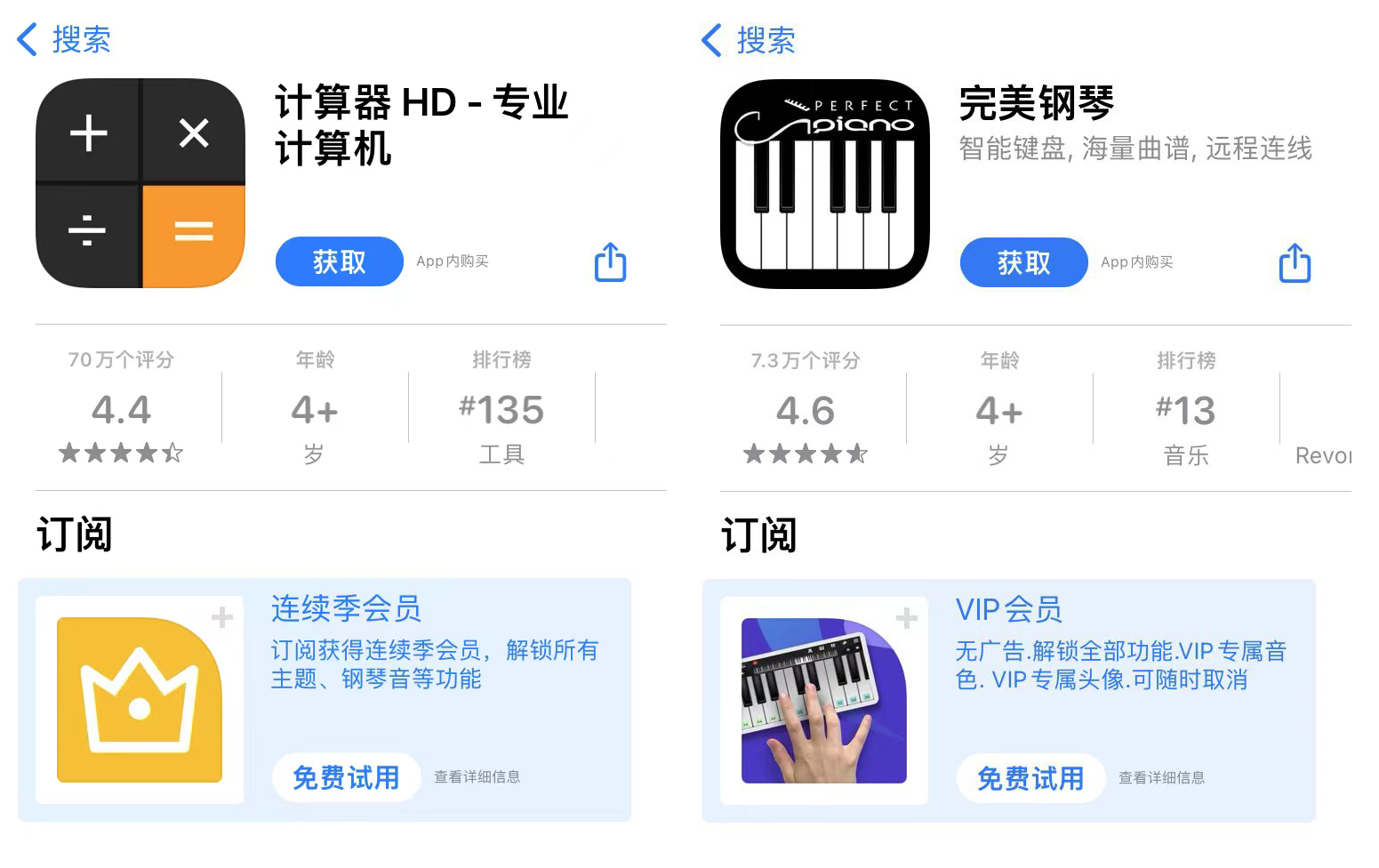 据了解,App Store中大量存在一些“免费试用+订阅制APP”,大多数都是一些照片编辑器、手电筒、壁纸、扫描仪等小工具。属于没什么用,长期吃灰的软件。