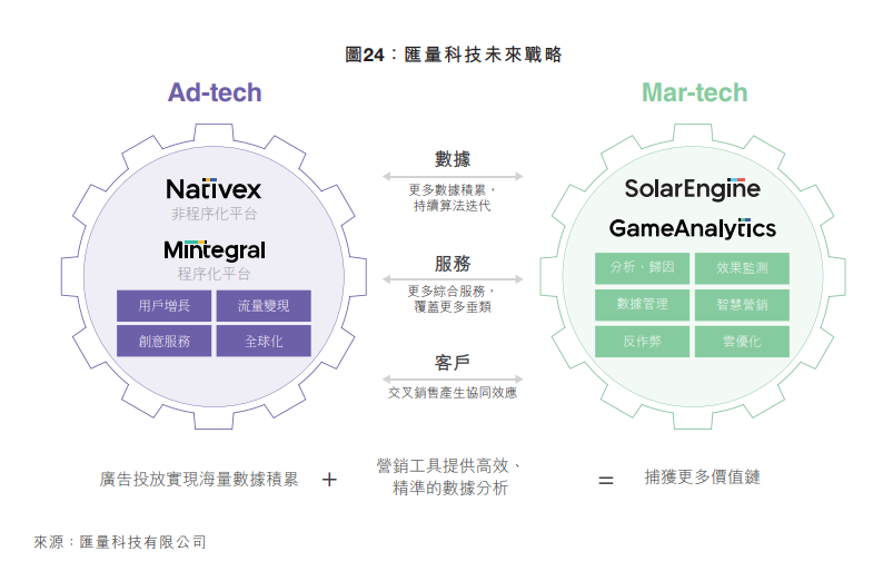 其中,广告技术业务模块包括Mintegral及效果营销公司Nativex,智能营销模块则包括游戏数据分析工具GameAnalytics,AI+云原生营销工具集SolarEngine(热力引擎)等,云计算成本优化工具则有SpotMax。