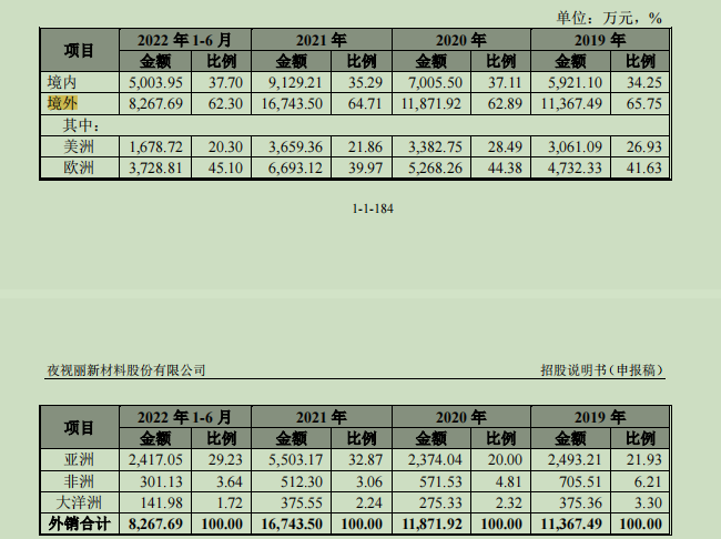 从披露的招股书来看,夜视丽的收入主要依赖境外。