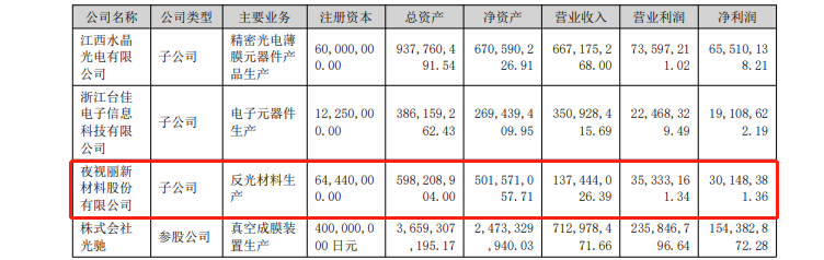 但上述部分数据与母公司水晶光电披露的数据有出入。诸如水晶光电披露的2022年半年报显示,夜视丽2022年上半年的营业收入与净利润指标分别为13744.4万元和3014.84万元。