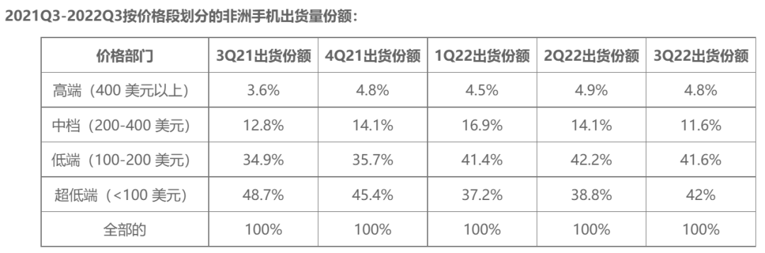 数据显示,2022年前三季度,传音营收超八成来自200美元以下的产品。
