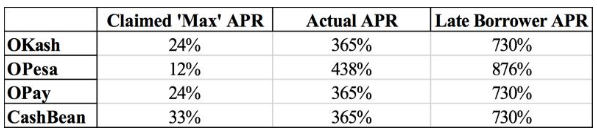 而且就像所有的金融科技公司一样,随着Opay支付的普及,也衍生了小额借贷产品,如尼日利亚的OPay,印度CashBean,肯尼亚的 OPesa。按照Opera的说法,最高年利率为 24%,不过做空机构 Hindenburg Research调查后发现实际年利率达到365%(尼日利亚)。