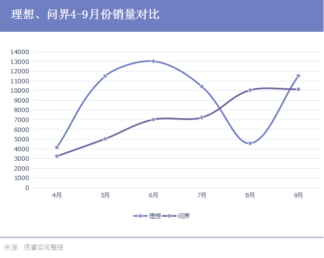 另一边,华为问界“趁火打劫”,吃下了不少理想换代期丢失的市场——在8月份,华为问界销量远超理想。