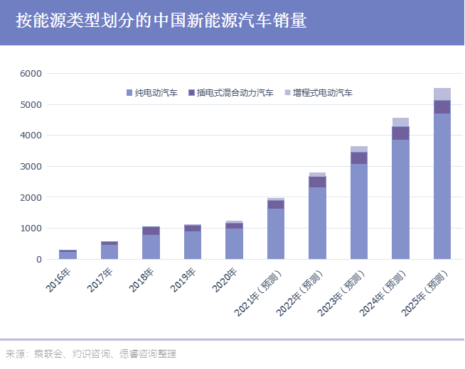 数据显示,增程式电动汽车在2020年-2025年复合增长率为64.7%,在2025年增程车将达到7.3%的市场份额。