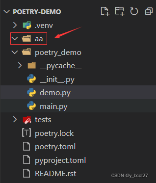 例如poetry-demo项目下面存在一个aa文件夹,如果想将此文件夹进行删除,可采用下述方式: