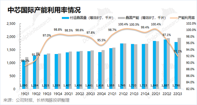 1)量的维度,中芯国际本季晶圆付运量(等效8寸)达到1798千片,环比下滑4.7%;