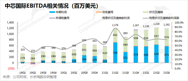 从 EBITDA 的角度看,三季度中芯国际税息折旧及摊销前利润达到 11.92亿美元,继续维持高位。