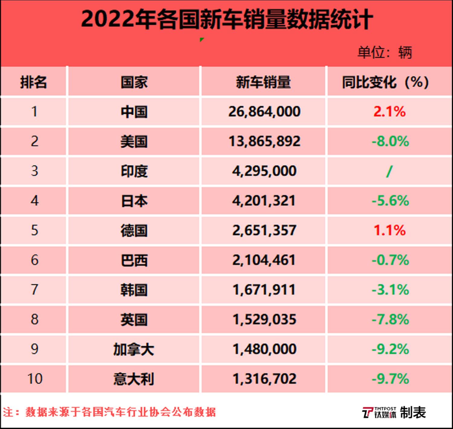 EVTank还在报告分析中指出,全球新能源汽车的销量主要贡献来自中国市场。2022年,中国新能源汽车销量达到688.4万辆,在全球的比重增长至63.6%。而这也助力中国车市逆势上涨,实现汽车产/销总量连续14年稳居全球第一。