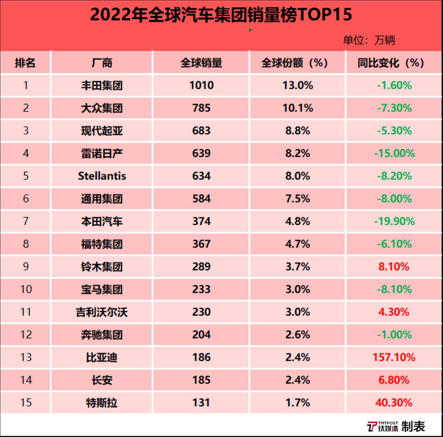 从业绩来看,纵观全球市场,丰田汽车的销量仍位列全球第一。但丰田汽车在华已经出现明显的“危险信号”,丰田汽车在中国市场遭遇了十年以来的首次销量下跌,194.06万台的成绩相较2021年减少了 0.2 %。