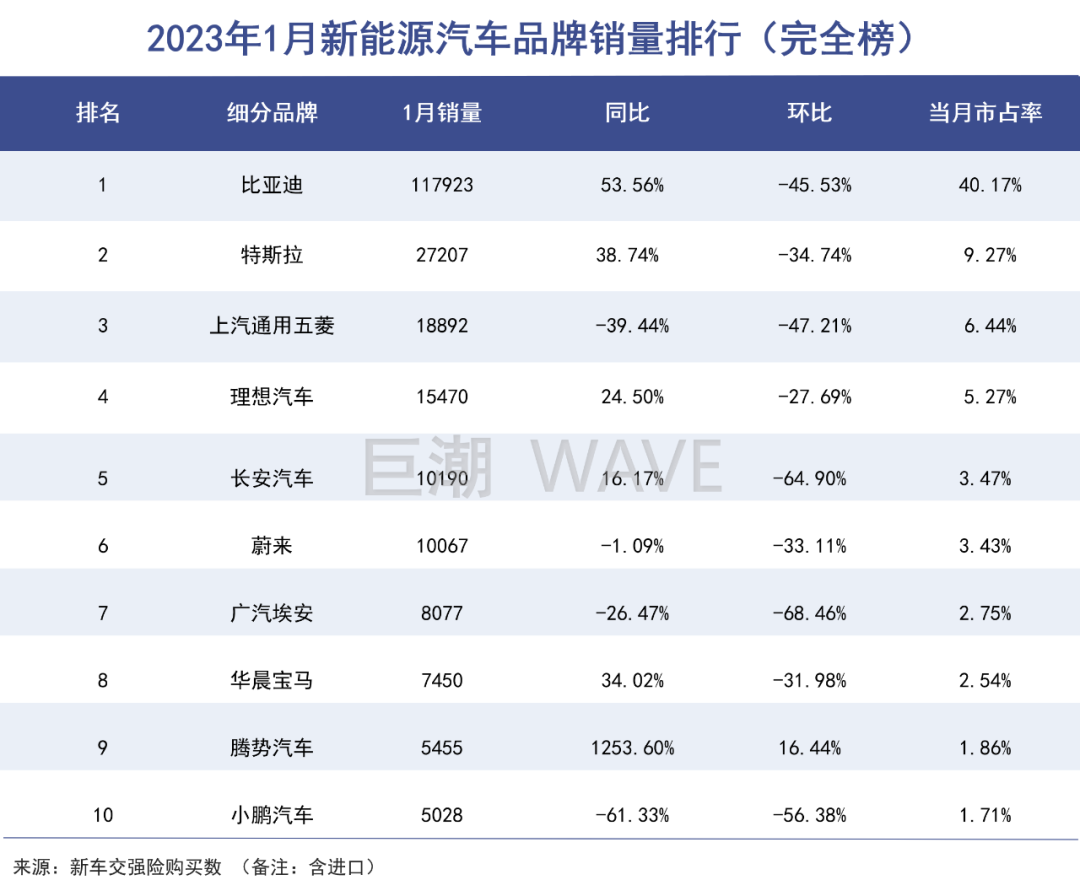 王传福喊出的2023年销量目标是剑指400万辆。按照如此趋势,比亚迪电池装车量赶超宁德时代可能性并非没有。实际上在新能车销量不济的1月份,比亚迪依旧表现不俗,当月市占率高达40%(新车交强险口径)。