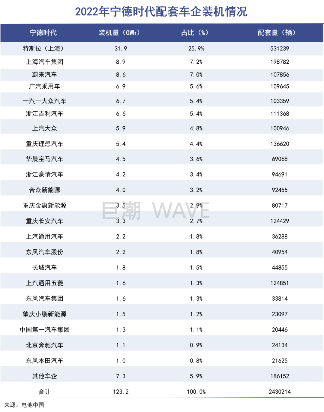 中国汽车动力电池产业创新联盟数据显示,2022年,宁德时代在国内市场的装机量为142.02GWh,市占率为48.2%,同比减少3.9个百分点。