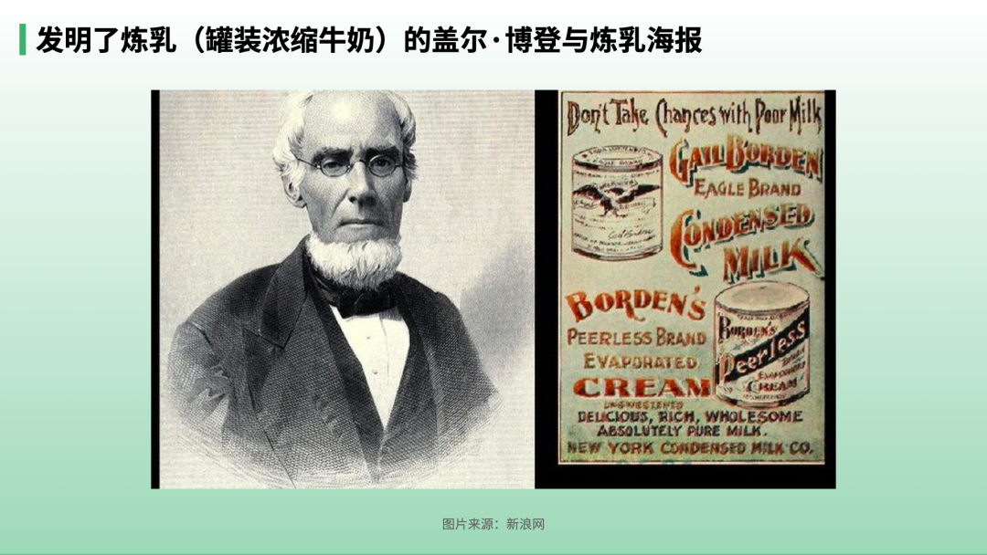 美国历史上曾爆发过西部淘金潮,当时有一支以乔治·当纳为队长的队伍,于1846年遭遇雪灾被困,为了生存,成员不惜残食同类,这就是当时震惊世界的“当纳聚会”。企业家盖尔·博登痛心于“当纳聚会”的惨剧,立志要发明一种可以压缩食品体积、延长存储周期的技术。