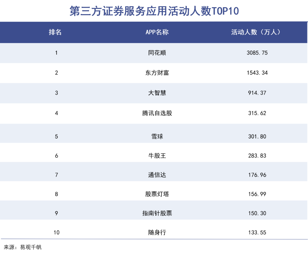 从月活数来看,同花顺是目前中国最大的证券类APP。