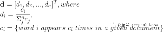 文本文档用向量d表示,其中每个元素表示文档中单词的归一化频率,即