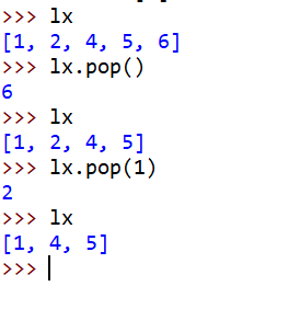 (3)pop:列表名.pop(列表位置) 不填写列表位置,默认最后一个;执行完后会默认返回删除的列表元素