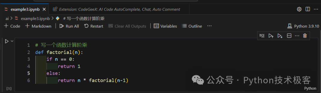 假设你要定义一个计算斐波那契数列的函数,当你开始输入函数体时,Codeium 会根据上下文提供补全建议。你可以选择建议来快速完成函数实现。如下图所示