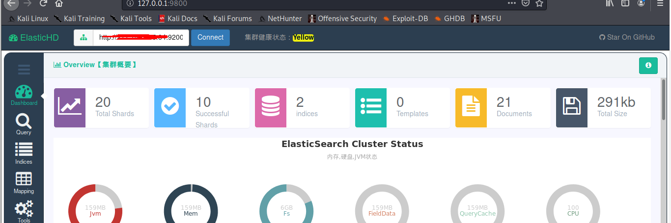 还可以搭建ElasticHD,,在浏览器中远程连接就可以看到ES节点服务器可视化数据的全貌了