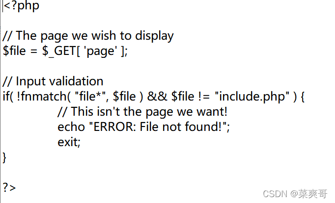 看下核心源码:这里使用fnmatch()函数对page参数进行过滤,要求page必须以“file”开头,服务器才会包含相应的文件。