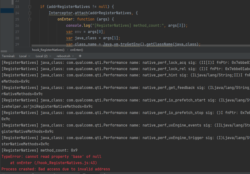 用frida hook一下,结果到这就报错退出了