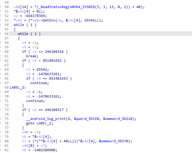 但是这里发现,一顿while 和if,根据龙哥的博客说的,大概率是ollvm混淆。那咋办?