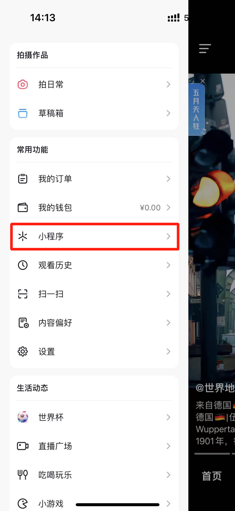 首先,在点击抖音左上角的菜单选项后,可以看到小程序的字样,进入抖音的小程序,用户需要在抖音小程序内搜索“打车”、“出行”等关键词,或者直接搜索出行服务商品牌名,才能找到所需要的打车小程序。