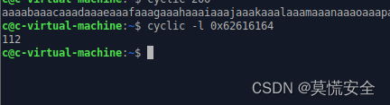 使用cyclic字符串生成工具生成一个字符串,也可以使用其他pwn 字符串生成 工具,这种工具主要目的是为了计算字符串起始地址到崩溃的栈地址的长度
