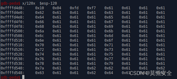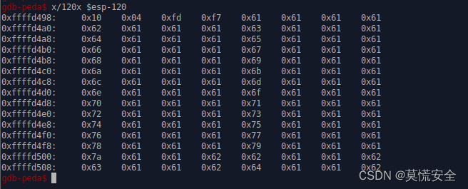 这个是直接gdb调试的时候 ,可以看到buffer首地址在0xffffd498+4的位置,也就是ECX的地址0xffffd49c确实会有不同