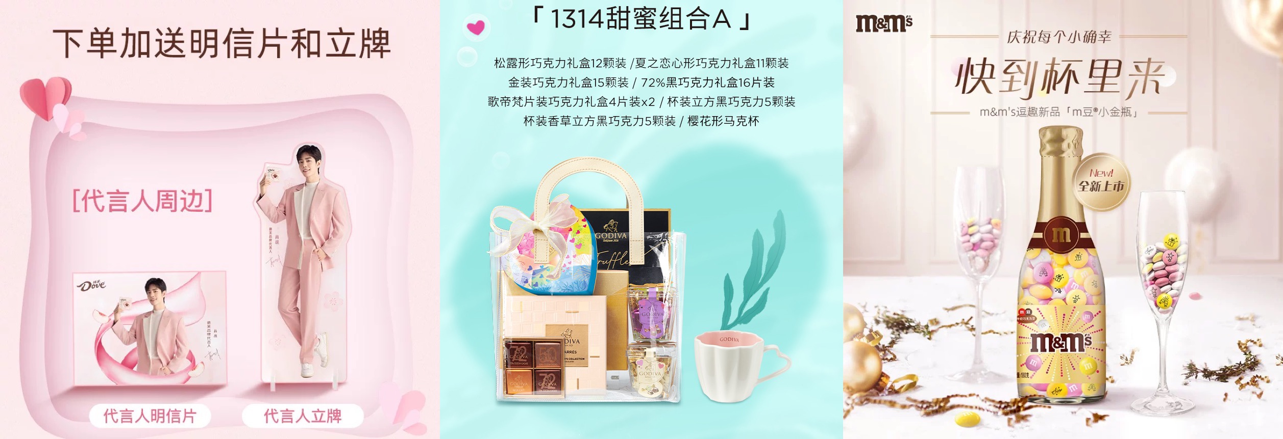 图片来源:德芙/GODIVA/M&M天猫官方旗舰店(从左至右)