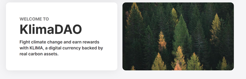 Klima DAO作为最知名的气候DAO组织之一,每个 KLIMA 代币都由现实世界的碳资产支持。代币用于抵消碳排放、与DeFi 应用程序交互,并与快速增长的全球碳市场链接。Klima DAO的目标就是促进碳资产升值,以此鼓励节能减排,推动气候行动。