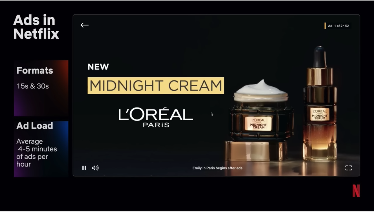Netflix做广告的策略是一手拥抱数据和算法主导的“定位广告”(也称为“可寻址广告”),一手推行着需要广告创意人员主导的“植入广告”。事实上,海外各大流媒体平台也都是以这两种广告为主。
