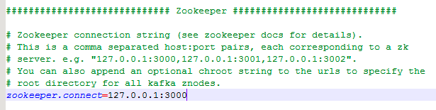 2.修改 **zookeeper.connect** 为你上面zookeeper.properties中配置的地址