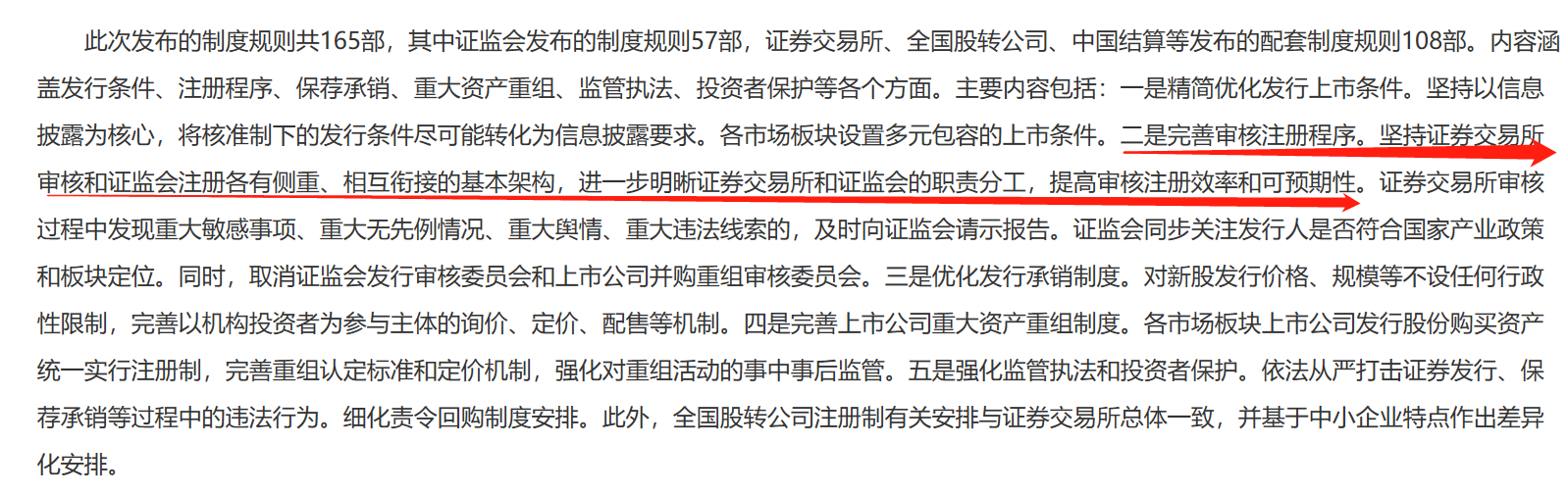官方公告显示,全面注册制共包含165部制度规则,其中包括57部证监会发布的制度规则和108部由证交所、全国股转公司、中国结算等发布的配套规则。在如此详细的规则制度保驾护航下,A股的发行、监管、信息披露、定价等环节都将发生巨变。