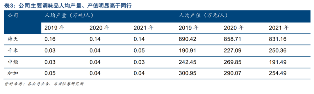 图:调味品行业人均产量、产值对比 来源:东兴证券研究所