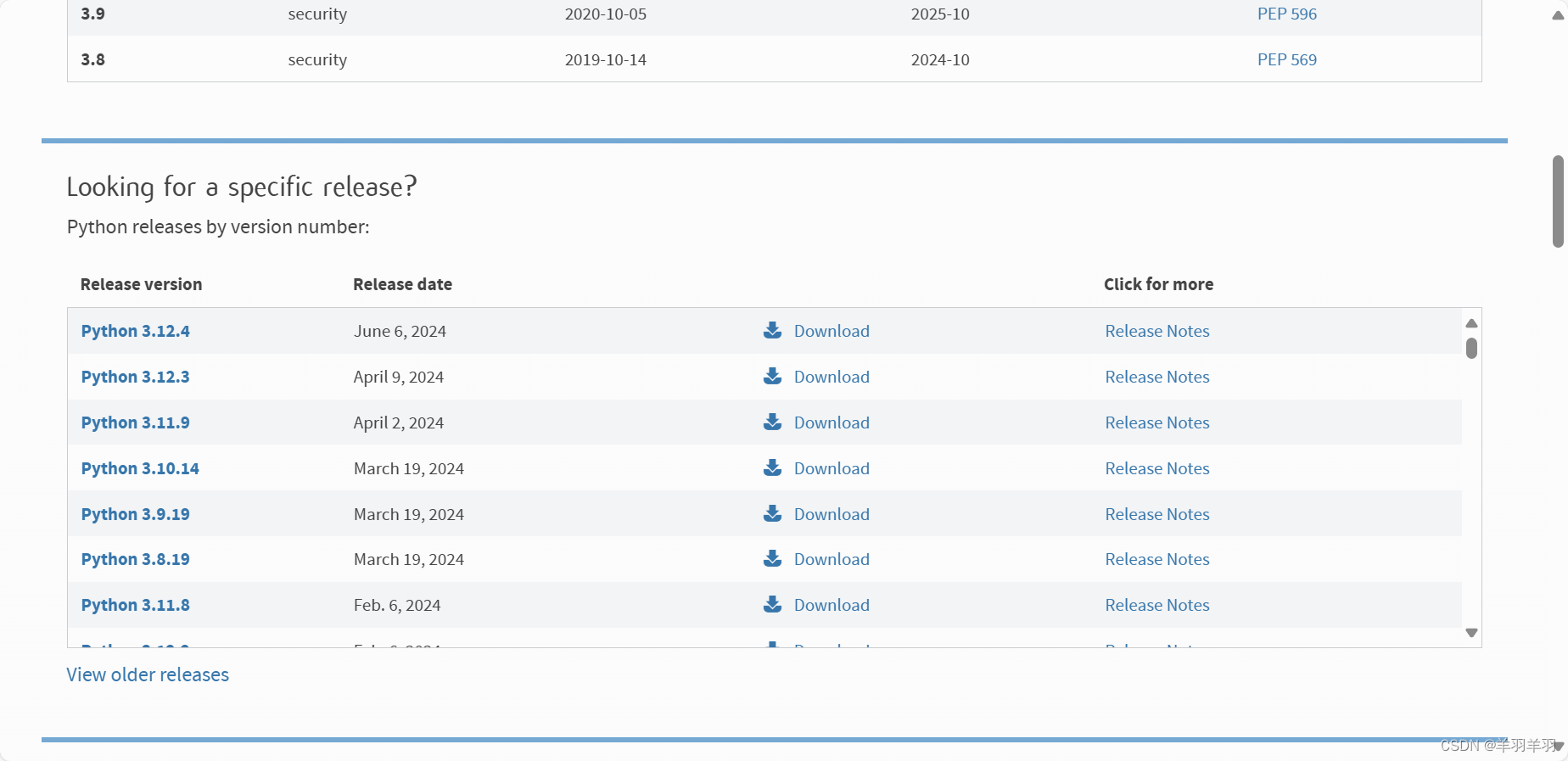 下拉页面,选择对应的版本,如果需要选择其他版本请点击右下角 View older releases 点击下载即可直接下载安装包。