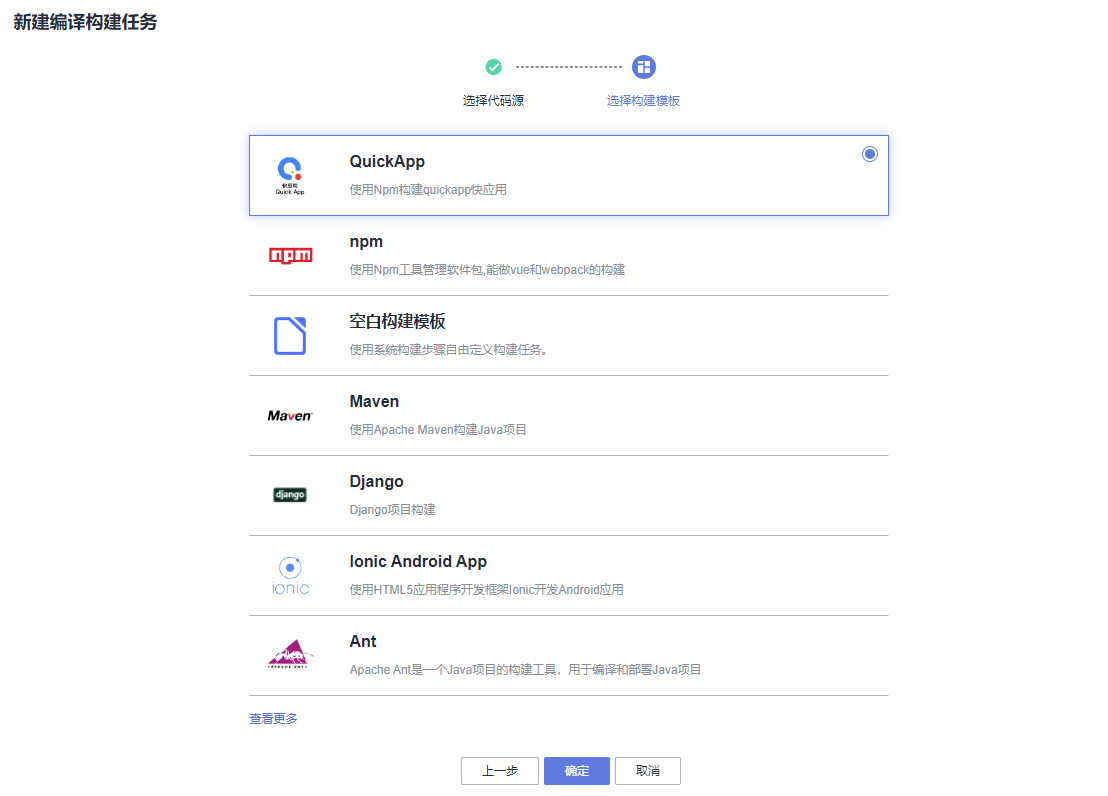 其中workerman-todpole社区系统的构建工具是php7.3.3,“小幺鸡”在线文档管理平台的构建工具是maven3.5.3-jdk8-open,NodeClub社区系统的构建工具Shell命令,这些在编译构建服务中都能覆盖,除此之外还有其他的模板和空白模板可以选择。