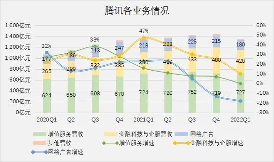 腾讯游戏与文娱板块各自陷入增长瓶颈之后,增长重担便自然而然落到了金融企服与互联网广告业务上。