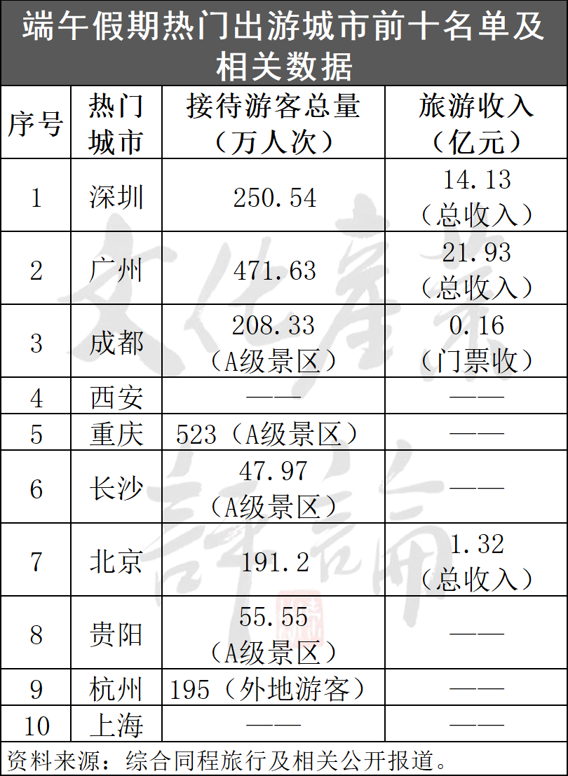 这些城市不仅仅是假日出游的热门目的地,也是假日旅游市场的重要客源地,充分彰显了国家旅游枢纽城市的引流与导流的双向功能。据同程旅行数据显示,深圳、广州、成都、西安、重庆、长沙、北京、贵阳、杭州、上海为端午假期热门出游城市前十。在端午假期热门出游城市前十座城市中,长三角城市占到半数,北京和上海解封后再次进入前十榜单。