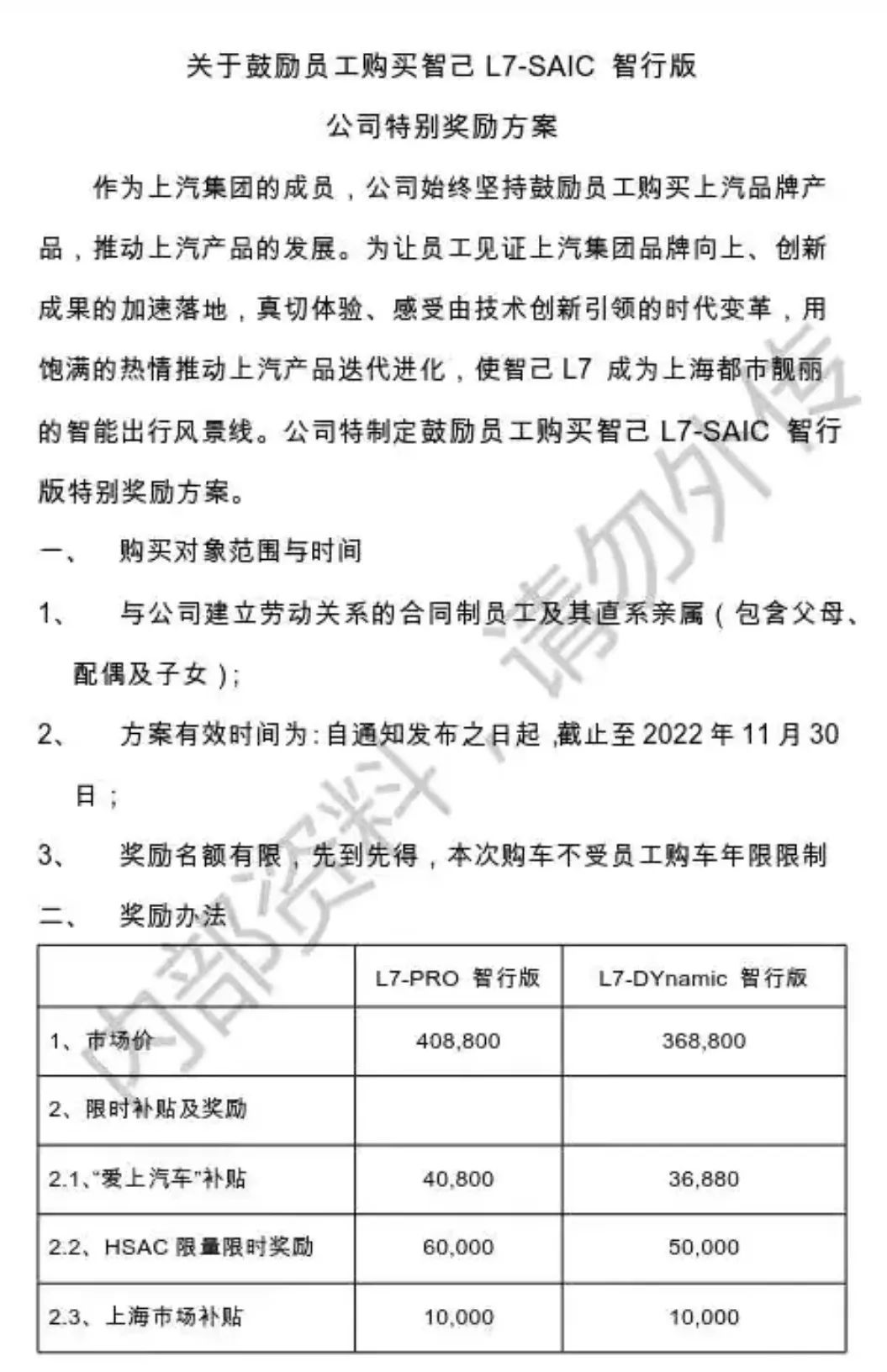 然而从一份流传在网络上的员工内购文件来看,智己L7似乎还很难称得上是“网红”。