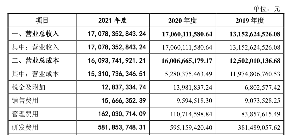 招股书显示,2019-2021年,丘钛微营收131.53亿元、170.60亿元、170.78亿元,同比增长61.76%、29.70%、0.11%。同期净利润分别是0.81亿元、5.09亿元、8.86亿元、9.05亿元,同比增长528.40%、74.07%、2.1%。净利润的增长情况由于营收,但其业绩增速自2019年冲高之后就开始回落,2021年增长停滞。