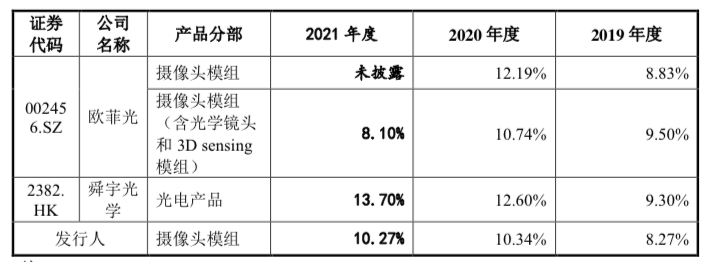 丘钛微毛利率与同行对比,图片截取自问询回复函