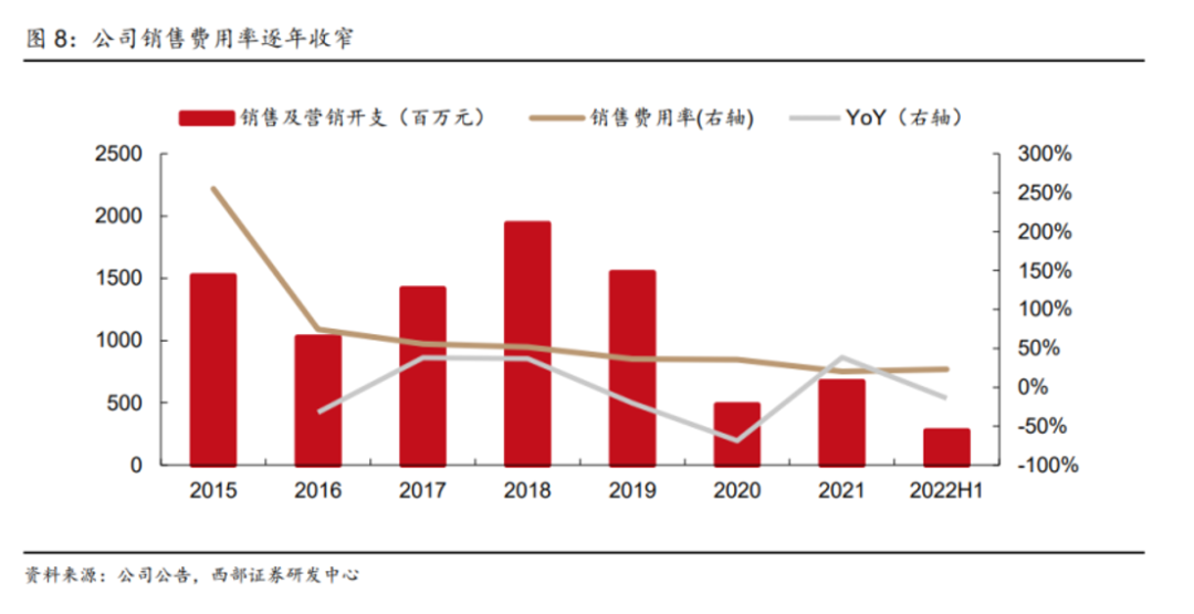 过去多年,猫眼的销售和营销开支一直占据较大的份额,在疫情前竞争最激烈的2015年至2017年,猫眼销售和营销开支分别为15.21亿元、10.28亿元、14.2亿元,分别占当年收入比例的255%、74.6%、55.7%。