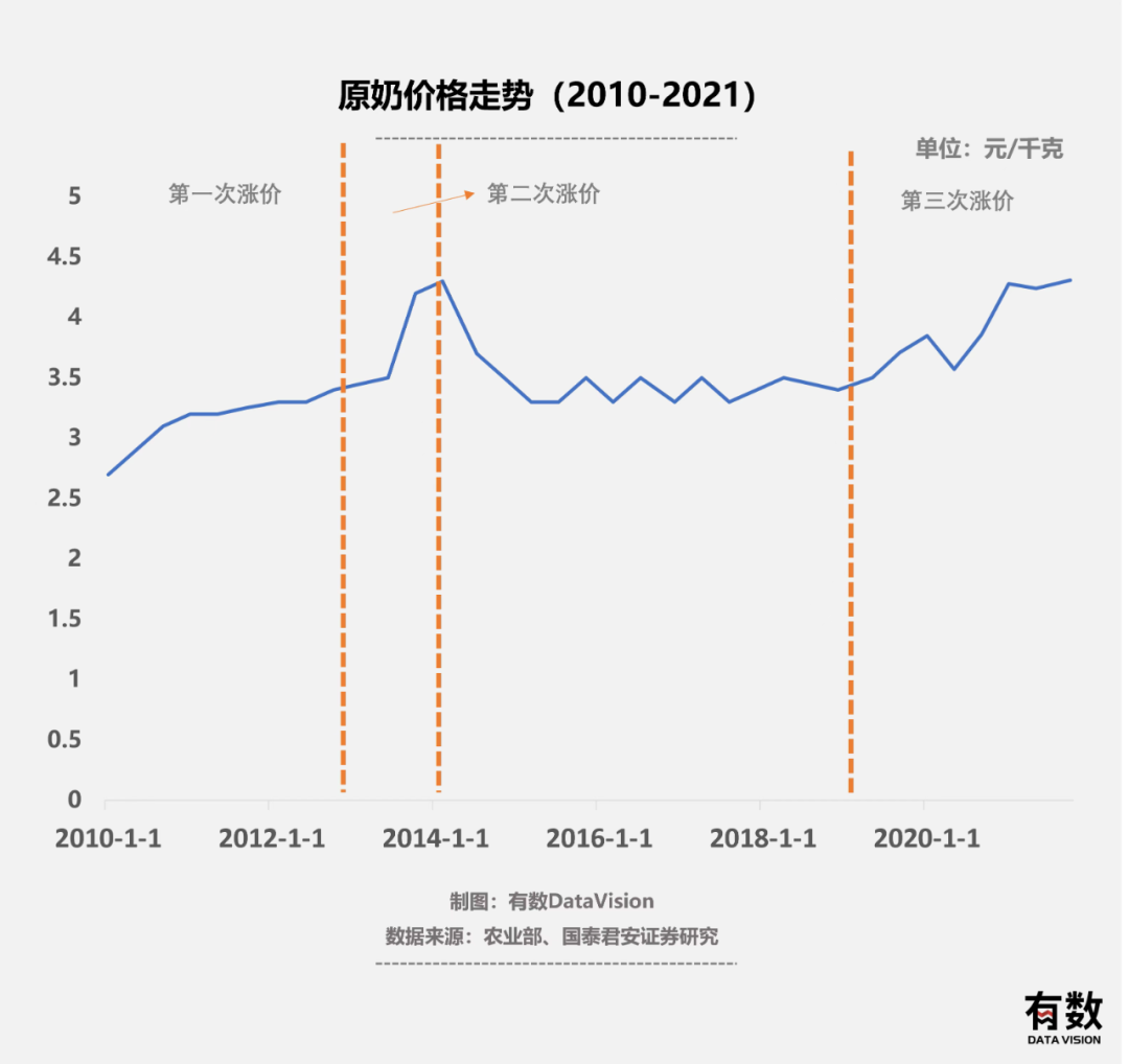而在每一轮奶周期后,赢家都是大企业。原因很简单,家大业大的乳企更能涨价。