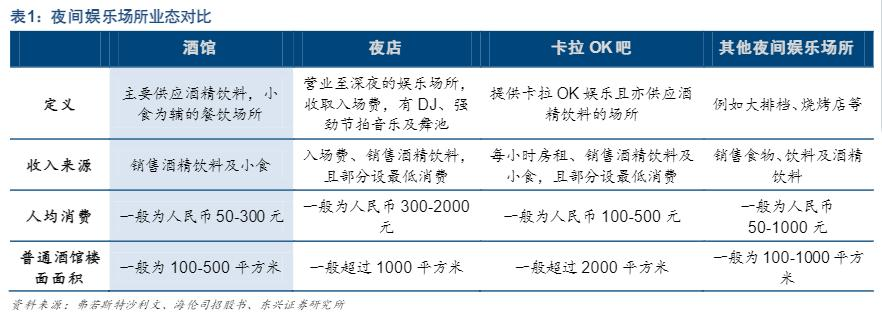 (夜间娱乐场所业态对比/东兴证券)