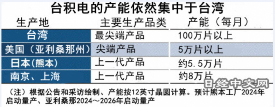 即使到了2026年,美国亚利桑那第二工厂投产后,合计月产能达到5万片,台积电最先进的产能仍有九成以上集中在中国台湾。