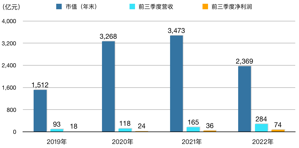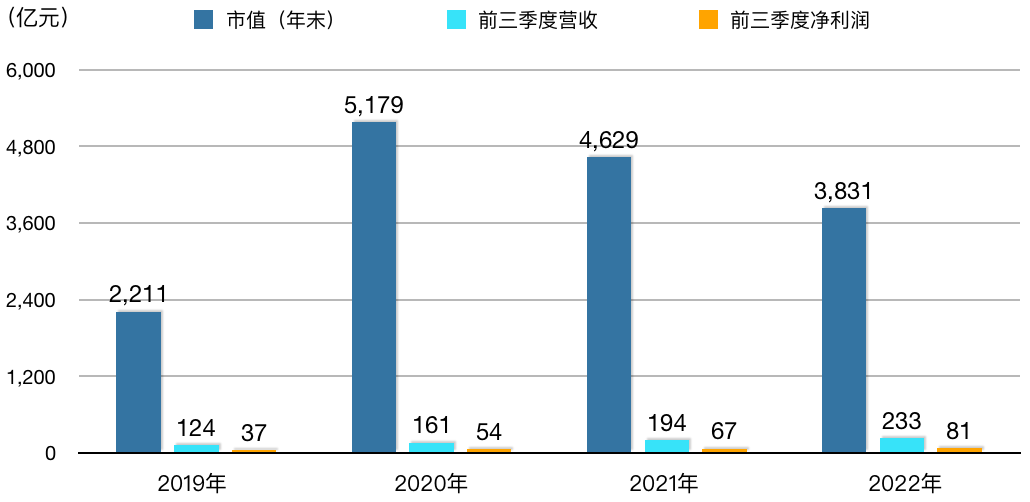 文章中2019年~2022年的市值,均为当年最后一个交易日的收盘值;