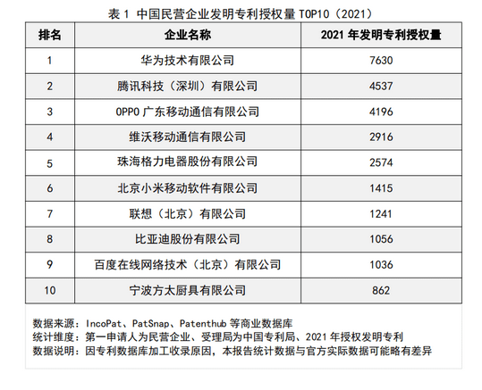 报告还显示,截至2021年年底,研发投入前1000家民营企业的研发费用总额1.08万亿元,占全国研发经费投入的 38.58%;中国民营企业500强国内外有效专利为 633922 项,较上年增幅为53.60%。